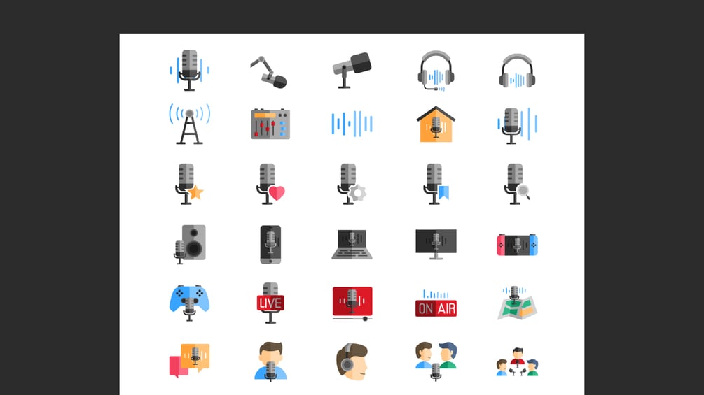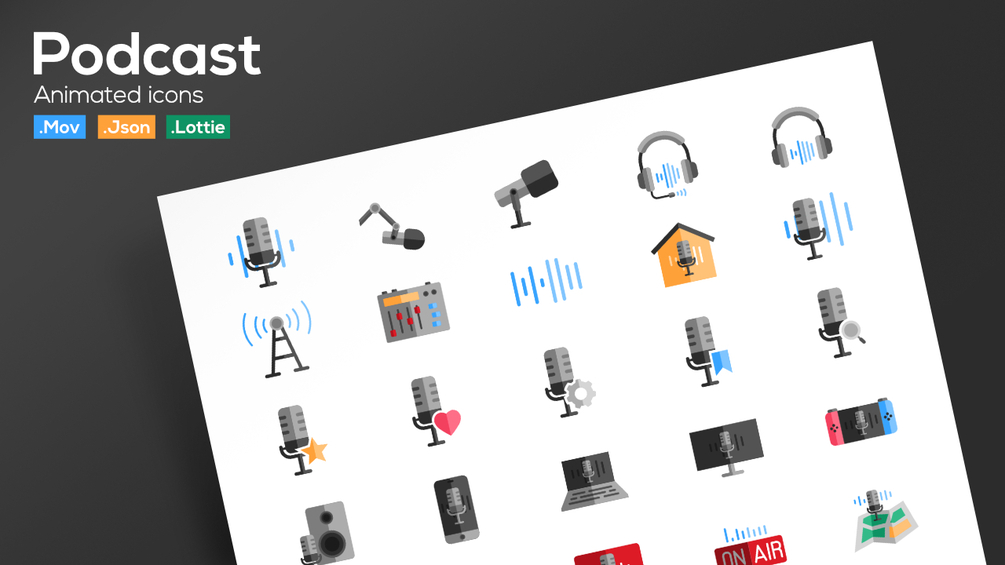 High quality podcast animated icons. Include 30 animated icons.